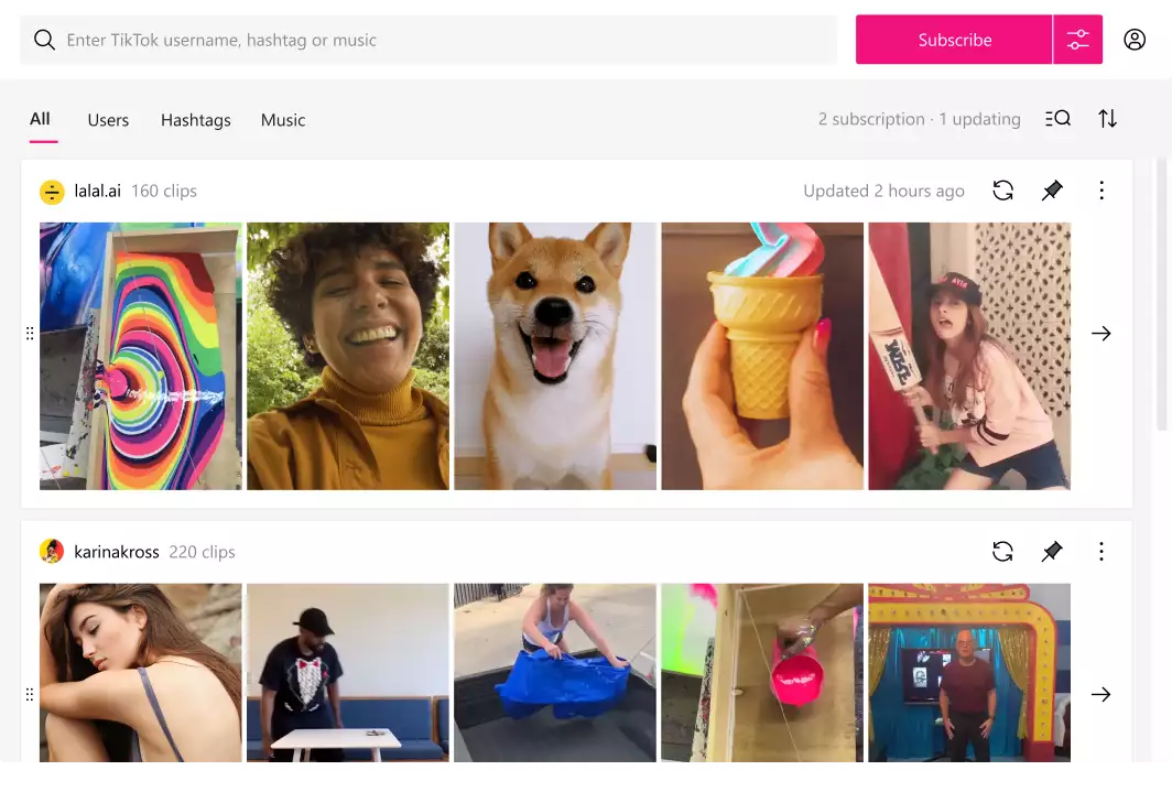 自动下载新的 TikTok 剪辑:及时了解您最喜欢的 TikTok 创作者和主题标签的更新。自动检查新视频,每天抓取新鲜内容,无需费力。